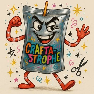 Craftpri Sun became the mascot of Craftastrophe, a sentient juice pouch who fuels artists, makers, and gremlins alike with liquid courage and sparkly nonsense. His straw arms bend but never break, and his metallic pouch body reflects the glittery madness of every craft explosion.
